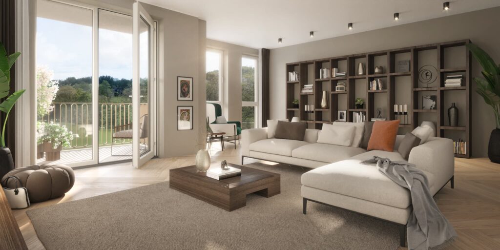 Ziet u zichzelf hier al zitten? Een kop thee in de hand, een boek op schoot en het gefladder van vlinders die op uw planten afkomen? Vanuit de drie-kamerappartementen gelegen op de begane grond tot en met de vierde etage stapt u zo uw terras of balkon op. Hiervandaan kijkt u uit over de weilanden en geniet u van de rust op de Buitenplaats. De appartementen in Vlietpoort Bijdorp worden voorzien van vloerverwarming en -koeling; heerlijk comfortabel.